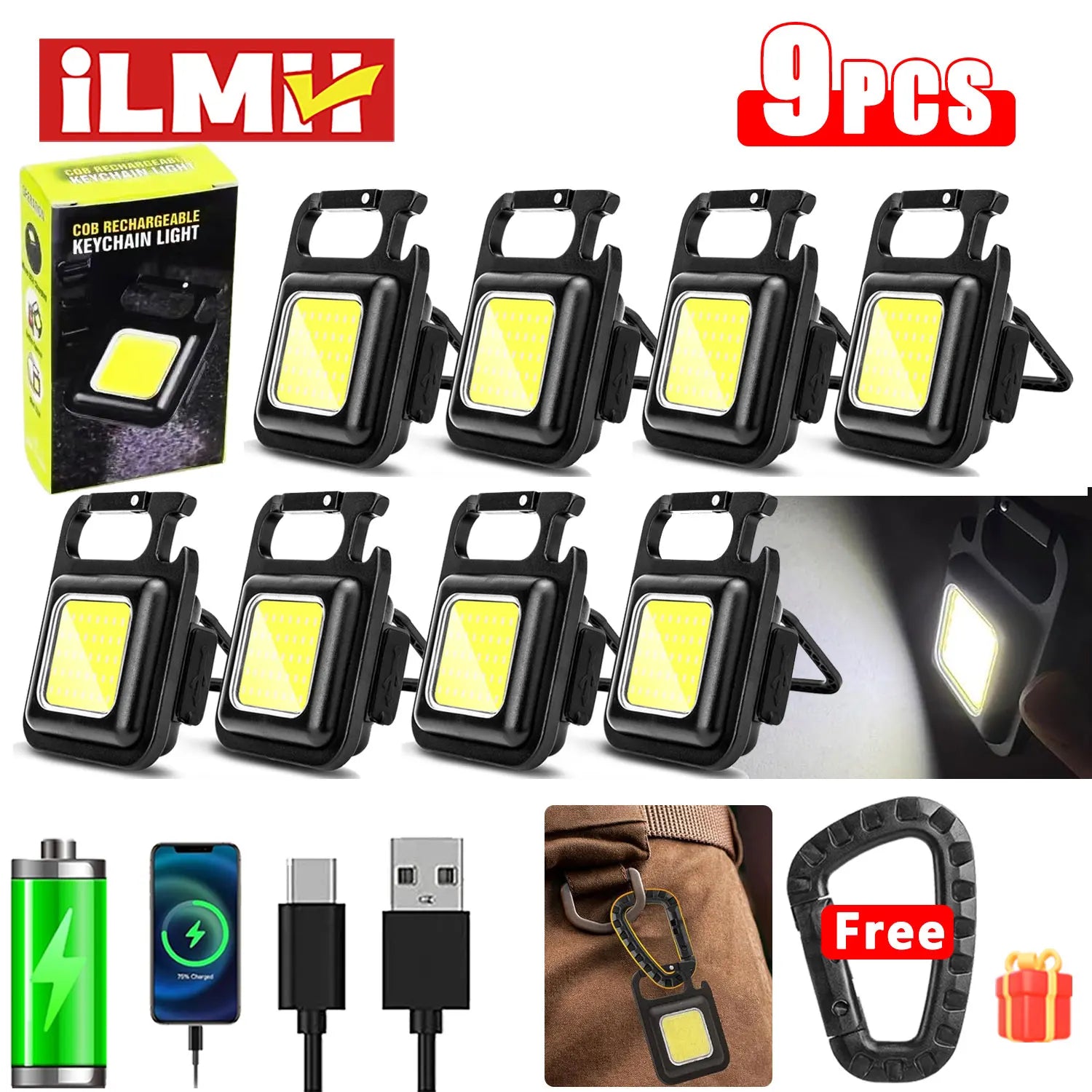 - 🔋 Power & Brightness: 500mAh built-in battery with 800-lumen COB light output.
