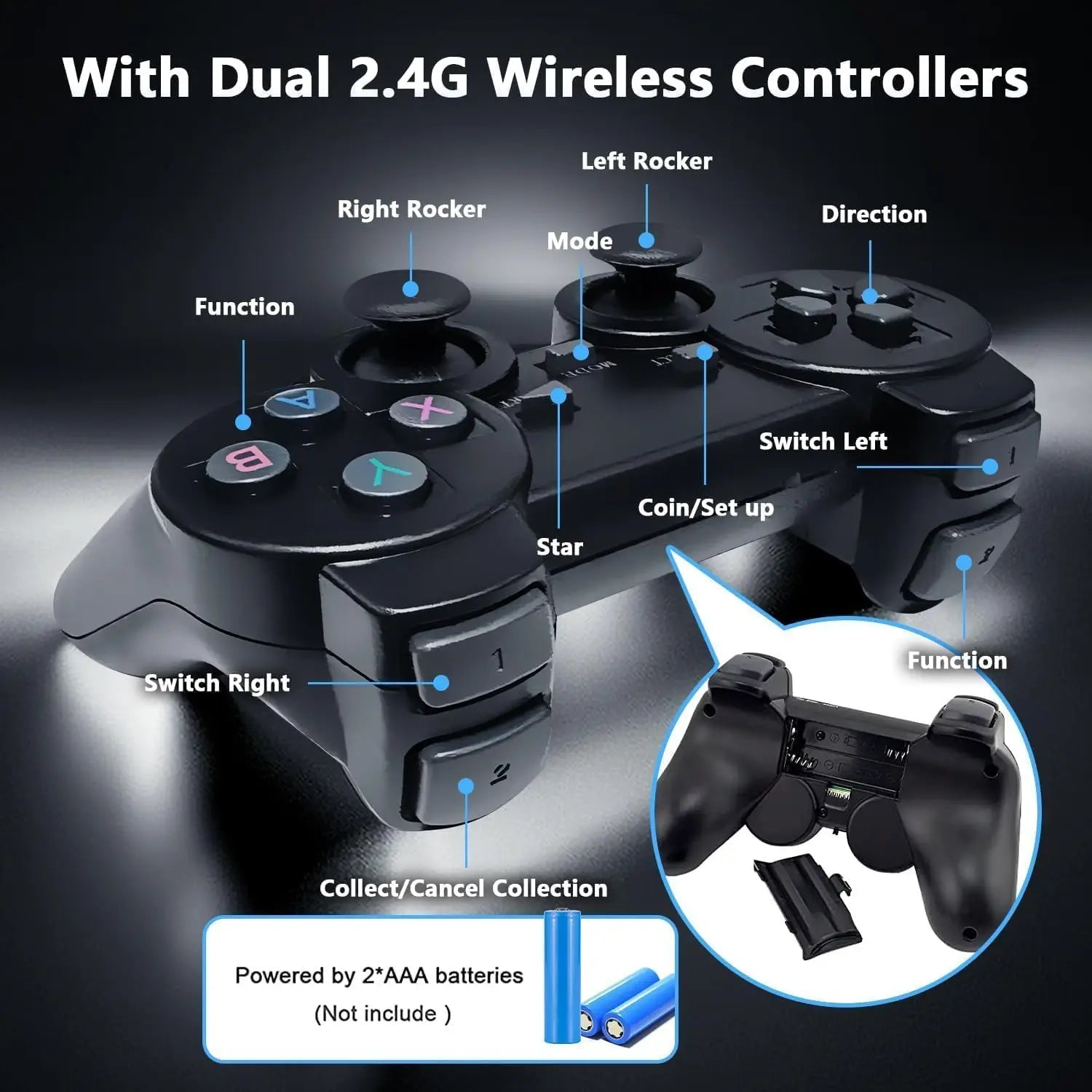 Retro Game Stick - Retro Game Console. Plug and Play. 20,500+ built-in games. Dual 2.4G wireless controllers (64G).