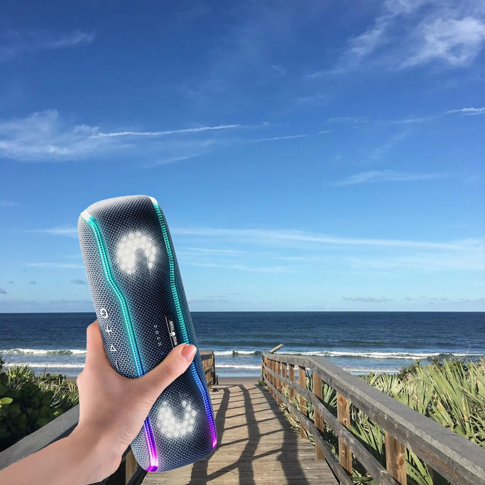 WISETIGER Speaker Outdoor Portable IPX7 Waterproof Sound Box BT5.3 Louderspeaker Stereo with 25W Colorful Light Surround Speaker