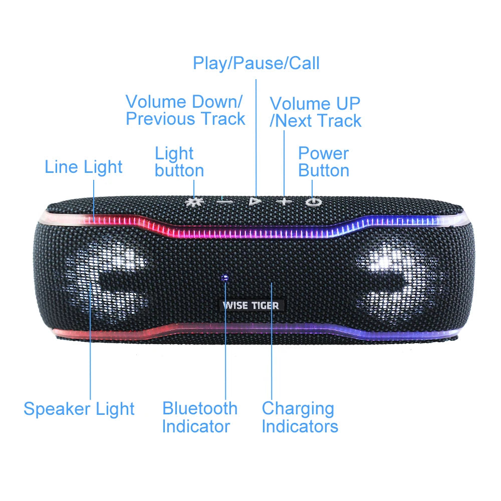- WISE TIGER brand guarantee: We use the latest Bluetooth technology and high-performance materials. It aims to provide users with more durable and cost-effective products, and make WSIE TIGER Bluetooth speakers your best partner on the road to future challenges.